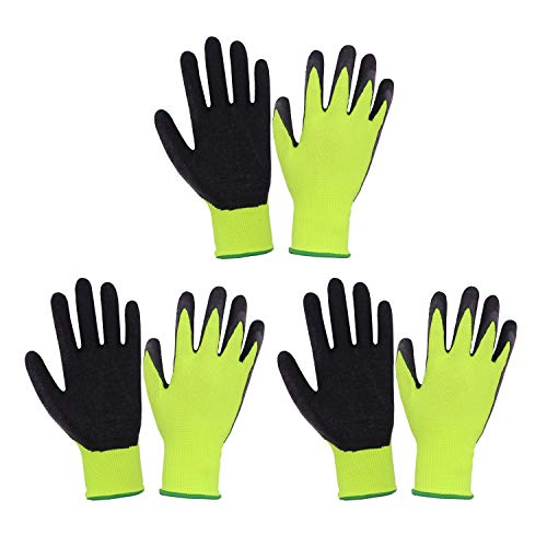 - Guantes de jardinería flexibles para niños: revestimiento de goma de espuma de látex natural y forro de poliéster que proporcionan la máxima comodidad, diseño de palma altamente flexible y antideslizante para un fácil manejo de herramientas de jardín y plantas.