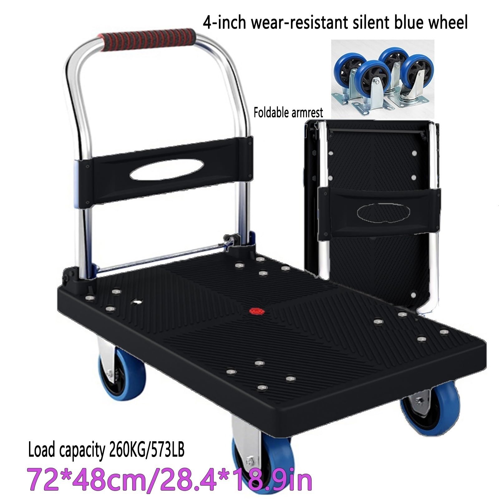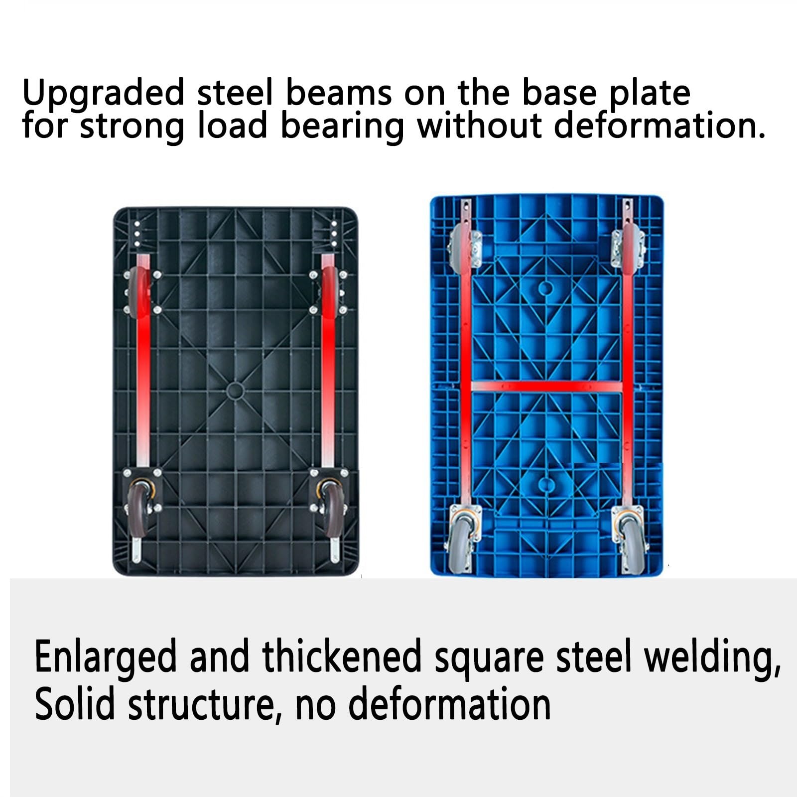 Carretilla Plegable con Ruedas Azules de 4 Pulgadas, Capacidad de Carga 260KG, Carretilla for Transporte Pesado(BLACK)