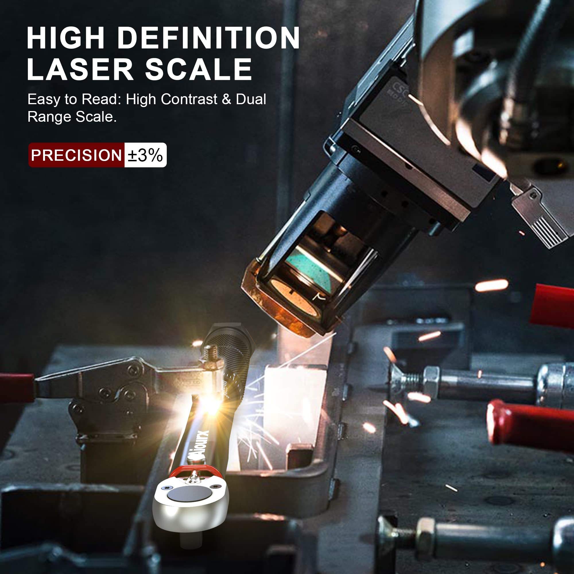 - Escala de doble rango y alto contraste precalibrada a +/- 4 %, alta precisión según DIN 6789. Cada llave a sido testada y calibrada.