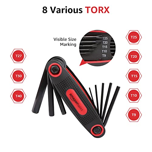 Detalles: Amazon Basics - Juego de llaves hexagonales plegables - Paquete de 3, métrica/SAE/TORX