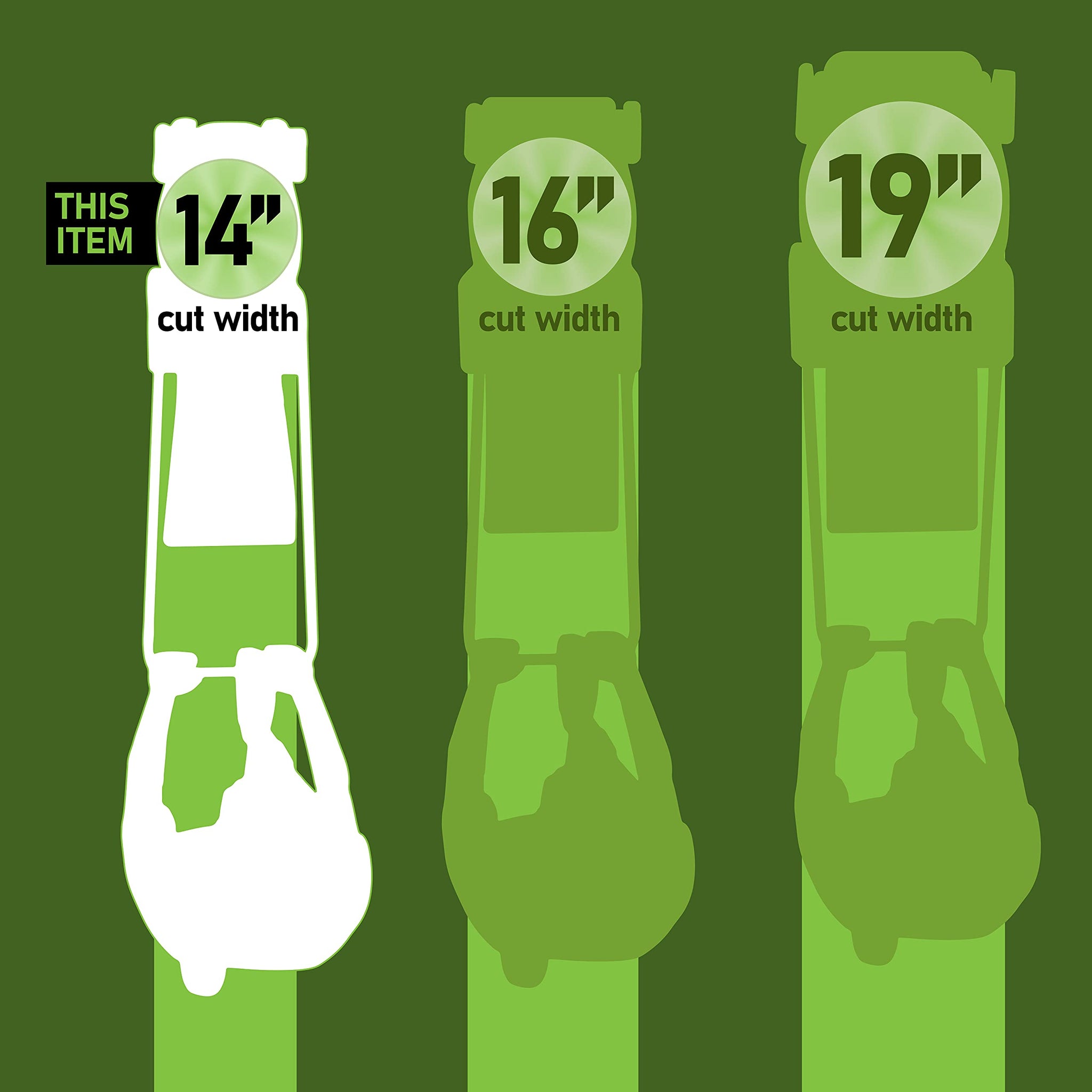 - Cortacésped eléctrico con cable con un gran ancho de corte de 14 pulgadas y 5 ajustes de altura de corte intercambiables de 1 a 2.5 pulgadas