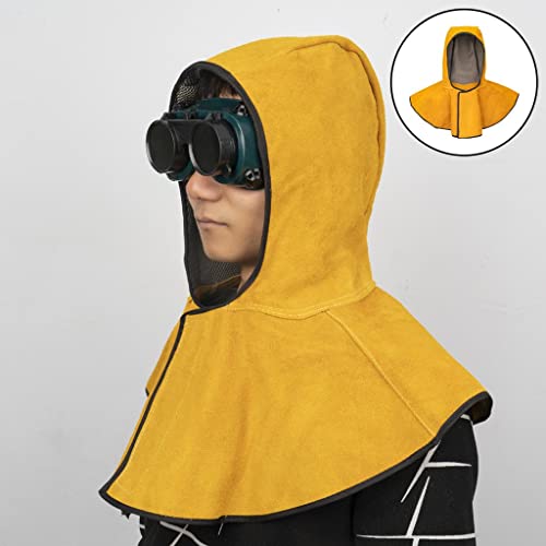 ▶ Capucha de soldadura para la cabeza/cuello de protección de soldador, protección para el hombro, casco ignífugo, de vacuno, resistente al viento, chal de soldadura, sombrero