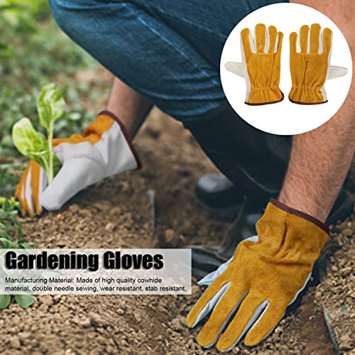 ▶ Guantes Jardinería Guantes de Cuero para Plantar, Trabajar, protección Solar, Resistentes a pinchazos, Resistentes a la abrasión, Guantes de Cuero con Dedos completos(M)