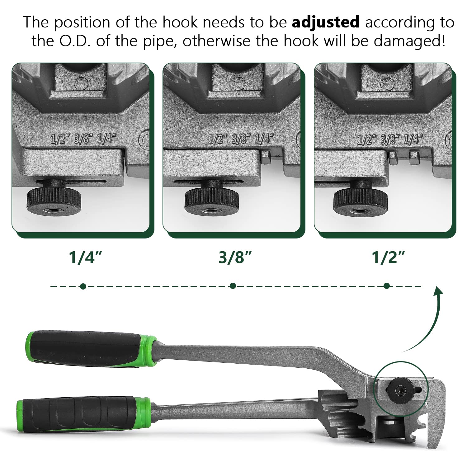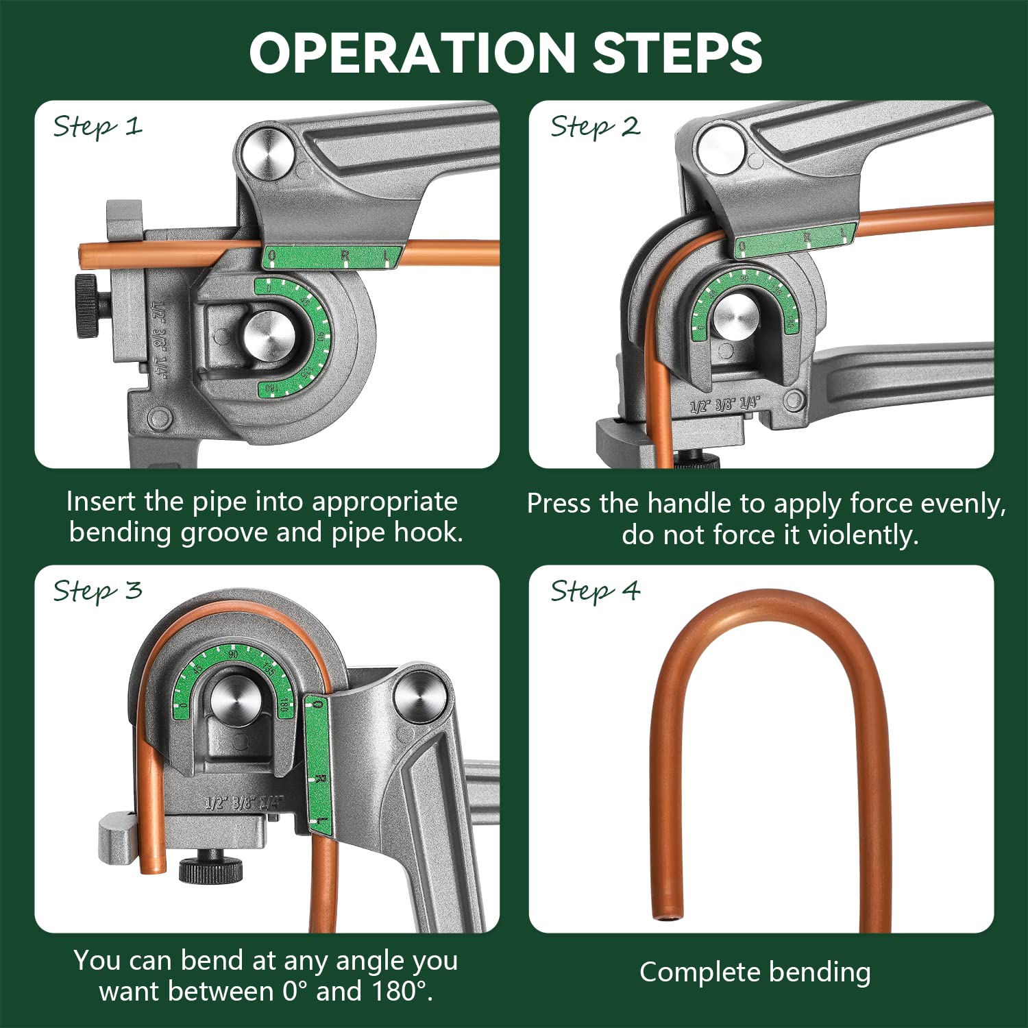 - [Diseño 3 en 1]: el doblador de tubos es una herramienta 3 en 1 y se adapta a tubos de 1/4", 3/8", 1/2".