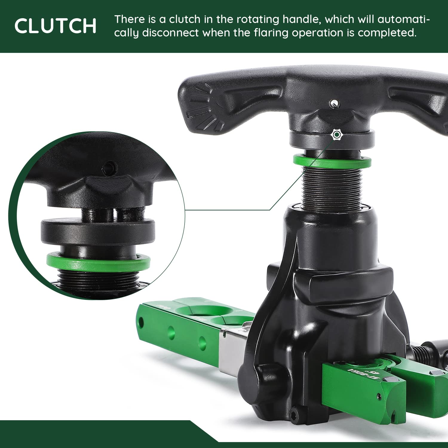 - Embrague: la herramienta de vuelo está diseñada con un embrague en el mango giratorio, que se desconectará automáticamente cuando se complete el abocinamiento.