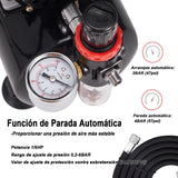 - 【Úselo con confianza】 Compresor de aire silencioso, el sonido es inferior a 47 decibelios, adopta una estructura de pistón, sin lubricación con aceite y la fuente de aire no contamina, por lo que puede usarlo con confianza.