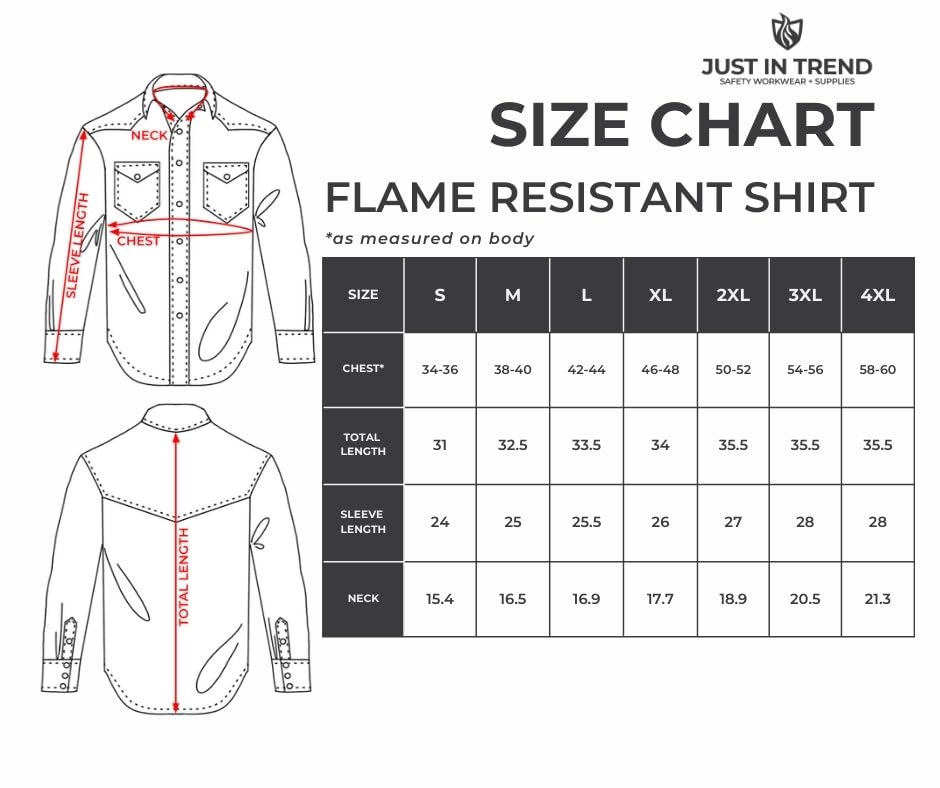 - Material y construcción: tela de peso pesado 100% sarga de algodón resistente al fuego. El peso de la tela es de 9 onzas/yardas cuadradas. La tela cumple con ASTM F1506 para Arc Flash y NFPA 2112 (ASTM F1930) para Flash Fire. La clasificación de arco de flash (ATPV) es de 13 Cal / cm2. y cumple con la calificación HRC 2. La prenda cumple con NFPA 2112 / HRC 2 y certificado UL. La tela está mercerizada y diseñada para proporcionar un encogimiento mínimo, máxima comodidad y seguridad y durabilidad óptimas