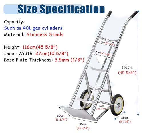 Carretilla portacilindros de gas de 2 ruedas for hospitales, clínicas y talleres - Carretilla portátil de acero inoxidable con sistema silencioso
