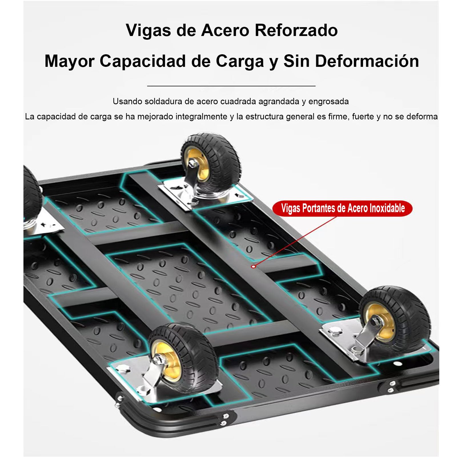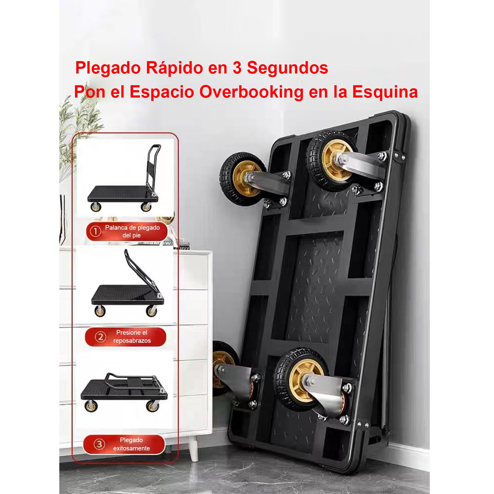 - 🛒【Diseño que ahorra espacio】Nuestro carro de plataforma se pliega fácilmente en menos de 3 segundos empujando los rieles. Llévalo contigo en tu coche, guárdalo en tu garaje, escóndelo en tu taller o incluso úsalo en un gran almacén.