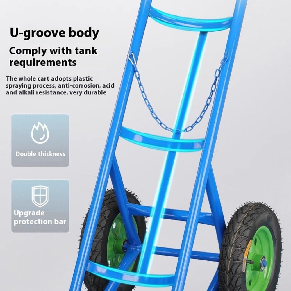 Carro De Cilindros De Acero Carro Para Almacenamiento Y Transporte De Cilindros Carretilla Para Tanque De Acetileno Y Cilindro De Oxígeno Neumático Inflable De 14 Pulgadas(Blue-A)