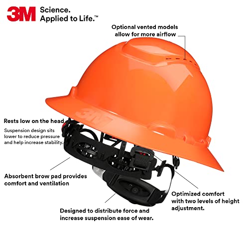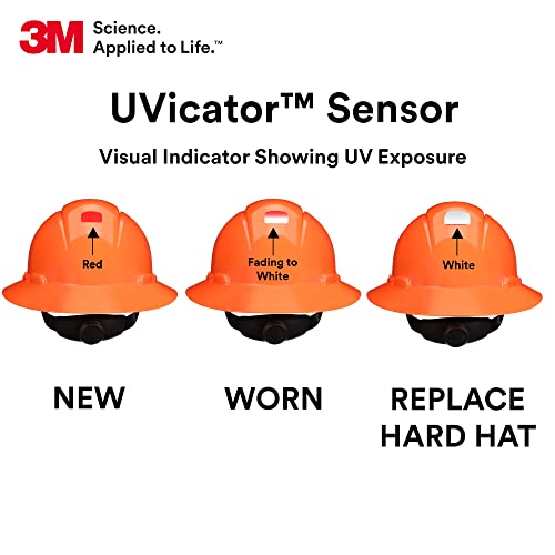 ▶ Casco de seguridad 3M SecureFit H-806SFV-UV, naranja, estilo de ala completa ventilada con sensor Uvicator, suspensión de trinquete de difusión de presión de 4 puntos, ANSI Z87.1