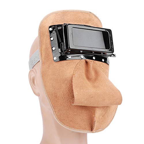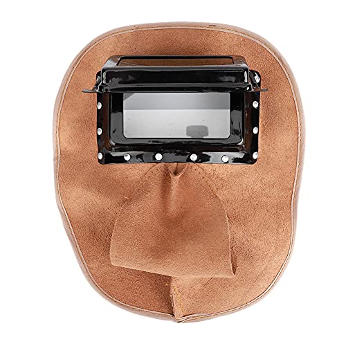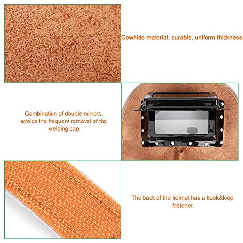 ▶ Capucha Soldador de Piel de Vaca Montada en la Cabeza Tapa de Doble Lente Antisalpicaduras Aislamiento Térmico Protección de Seguridad Capucha de Sombra Ancha Máscara de Soldador para Soldadura Eléc