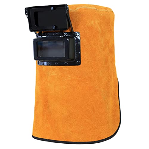 ▶ Capucha de soldadura Casco de cuero resistente al calor con lente de filtro con cuello con cuello de protección de la cara de la cara de la soldadora Accesorios de