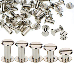 🔩 Chicago - Juego de 100 tornillos de metal, accesorios de uñas, remache de uñas, decoración de piel, libro de documentos, álbumes, encuadernación, cabeza plana redonda (plateado, 1/4, 3/8, 1/2, 9/16,