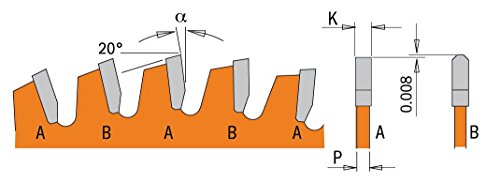 - - Ángulo de gancho de 6 grados, molienda TCG, 0.110 Kerf, placa 0.079.