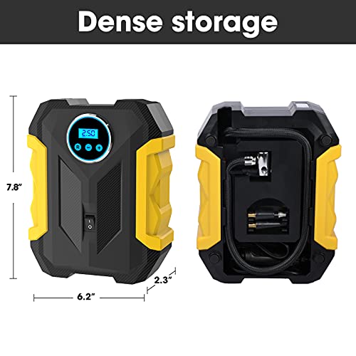 - ✔【Presión máxima de trabajo de 150 PSI】: con presión máxima de 150 PSI y flujo de aire de 35 l/min. Puede inflar el neumático de coche 195/65/R15 de 0 a 35 psi en menos de 5 minutos. Mucho más eficaz y más rápido que la bomba tradicional. Medidor de presión de neumáticos preciso integrado.