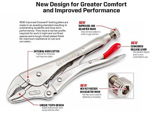 Detalles: Los alicates de bloqueo creciente cuentan con un acabado chapado en níquel para resistir el óxido y la corrosión y nuestro exclusivo patrón patentado de dientes en ángulo para un mejor agarre.
