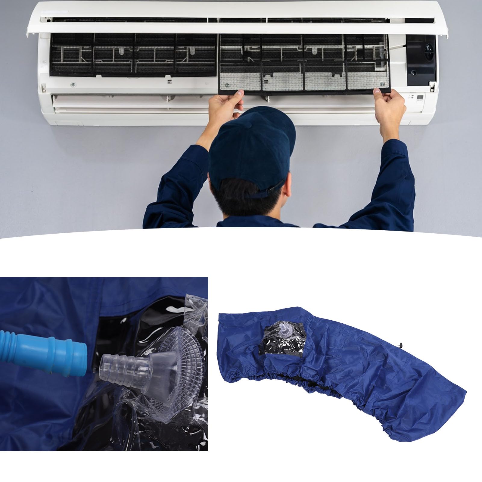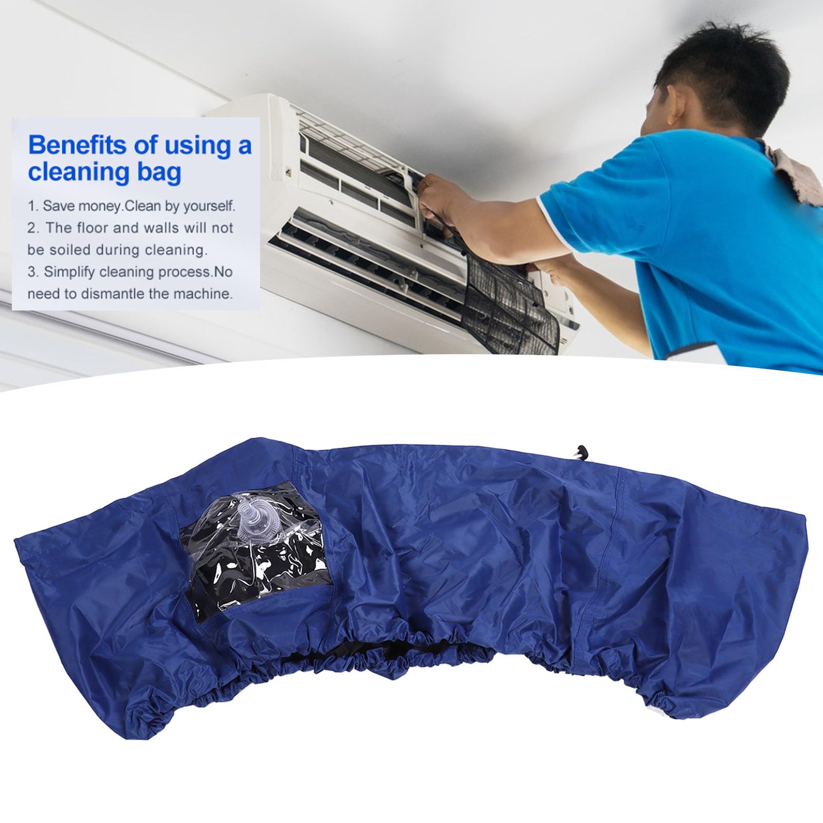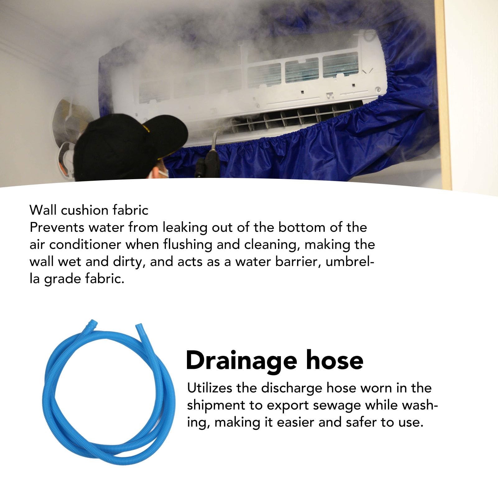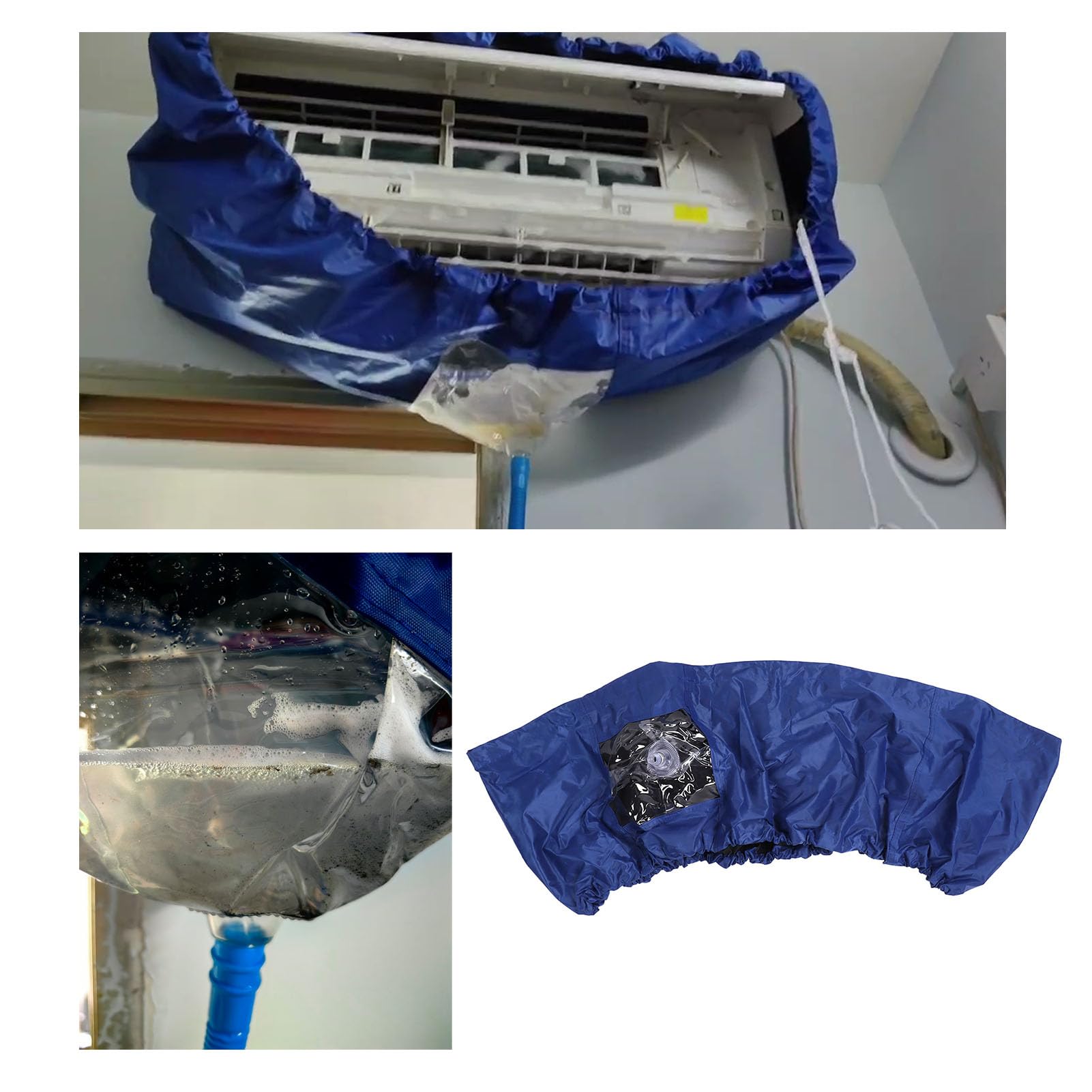 - 【DISEÑO DE DRENAJE】 El kit protector de limpieza de CA está equipado con una salida de drenaje dedicada y un tubo de drenaje en forma de campana, este kit de limpieza garantiza un drenaje de agua conveniente y seguro durante el lavado, lo que lo hace más fácil y seguro de usar. la bolsa de servicio de limpieza incluye 1 funda para aire acondicionado, 1 paño impermeable, 1 tubo de drenaje, 1 bolsa de almacenamiento, accesorios.