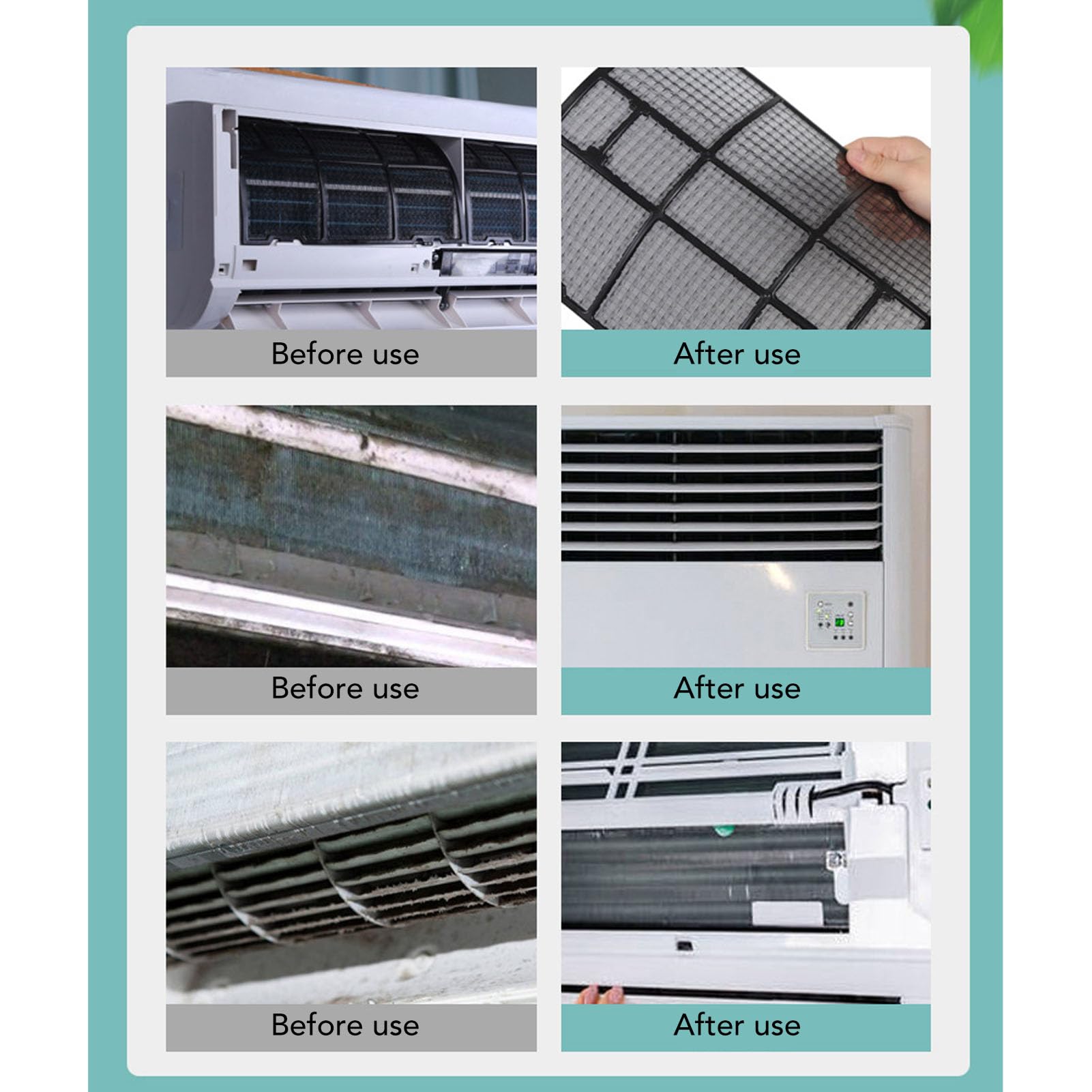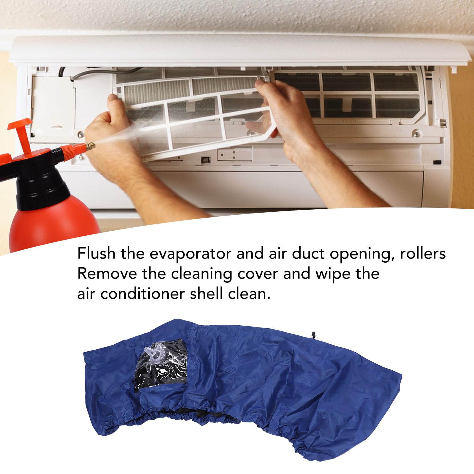 - 【NOT】 1. el color de la tela impermeable es al azar. Antes de usar, recuerde colocar el enchufe de alimentación del aire acondicionado y luego limpiar. 3. después de la limpieza recuerde encender durante media hora, abra el modo de deshumidificación al aire acondicionado limpieza de drenaje de agua , residuos de agua dará lugar a moho afectar el uso del próximo año.