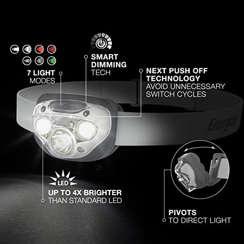 Energizer.- Faros LED Pro (Paquete de 2), IPX4 Resistentes al Agua, luz de Cabeza de Alto Rendimiento para Exteriores, Camping, Correr, tormenta, Supervivencia, (Pilas Incluidas)