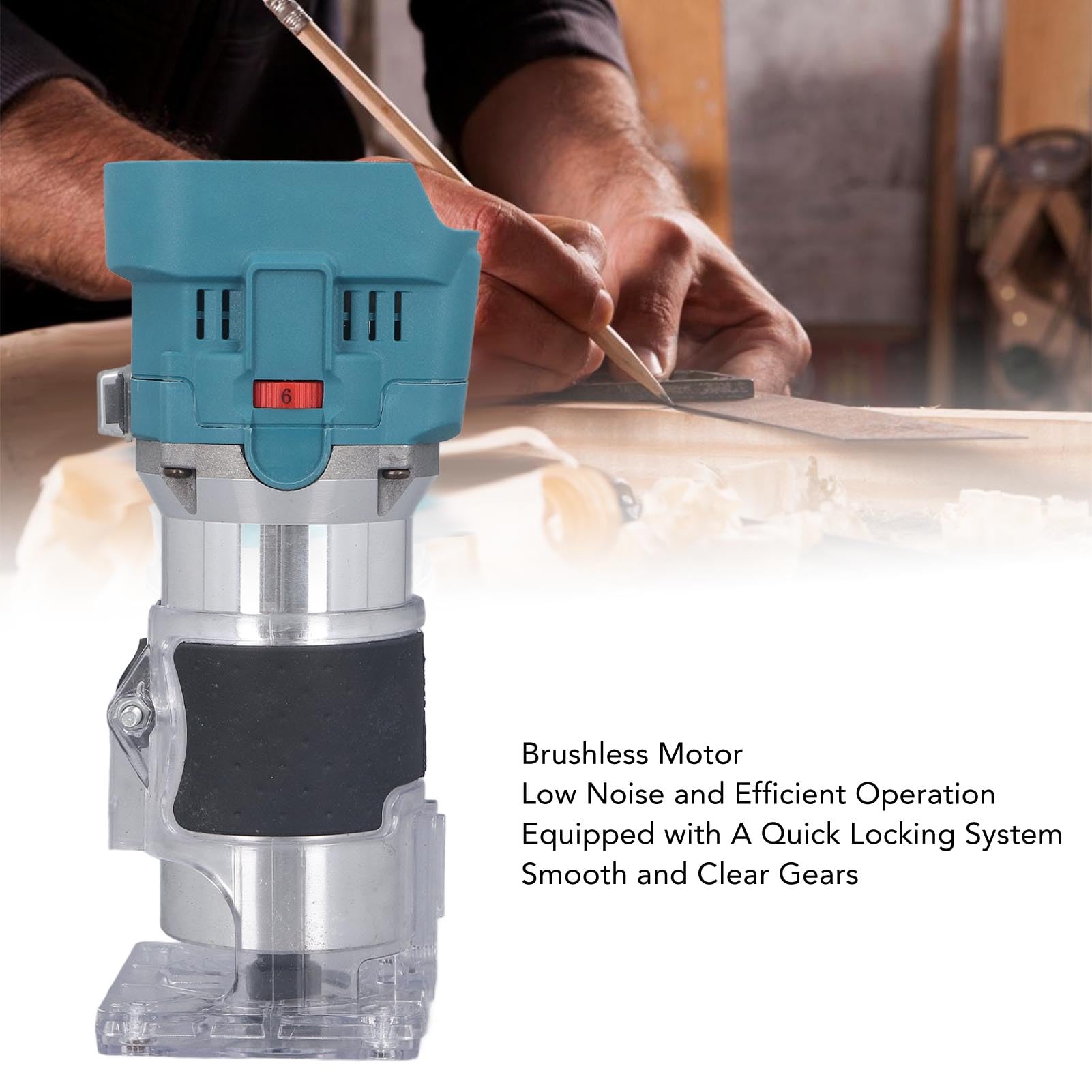 - Motor sin escobillas: la fresadora cortadora de madera adopta un excelente motor sin escobillas que puede proporcionar suficiente fuerza y funcionar con poco ruido y alta eficiencia, lo que hace que sea más fácil, rápido y preciso cortar diversos materiales. La operación es simple y rápida y el procesamiento es más estable.