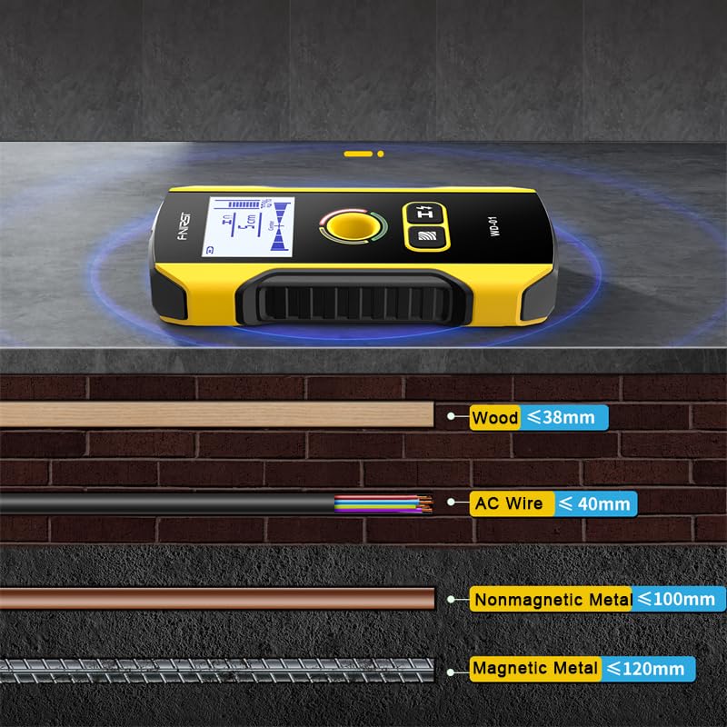 - 1. Capacidad avanzada de detección 6 en 1: este detector electrónico de espárragos de pared incorpora tecnología avanzada para detectar con precisión madera, pernos metálicos, cables de CA, vigas y tuberías, proporcionando una solución de escaneo integral para profesionales y propietarios.