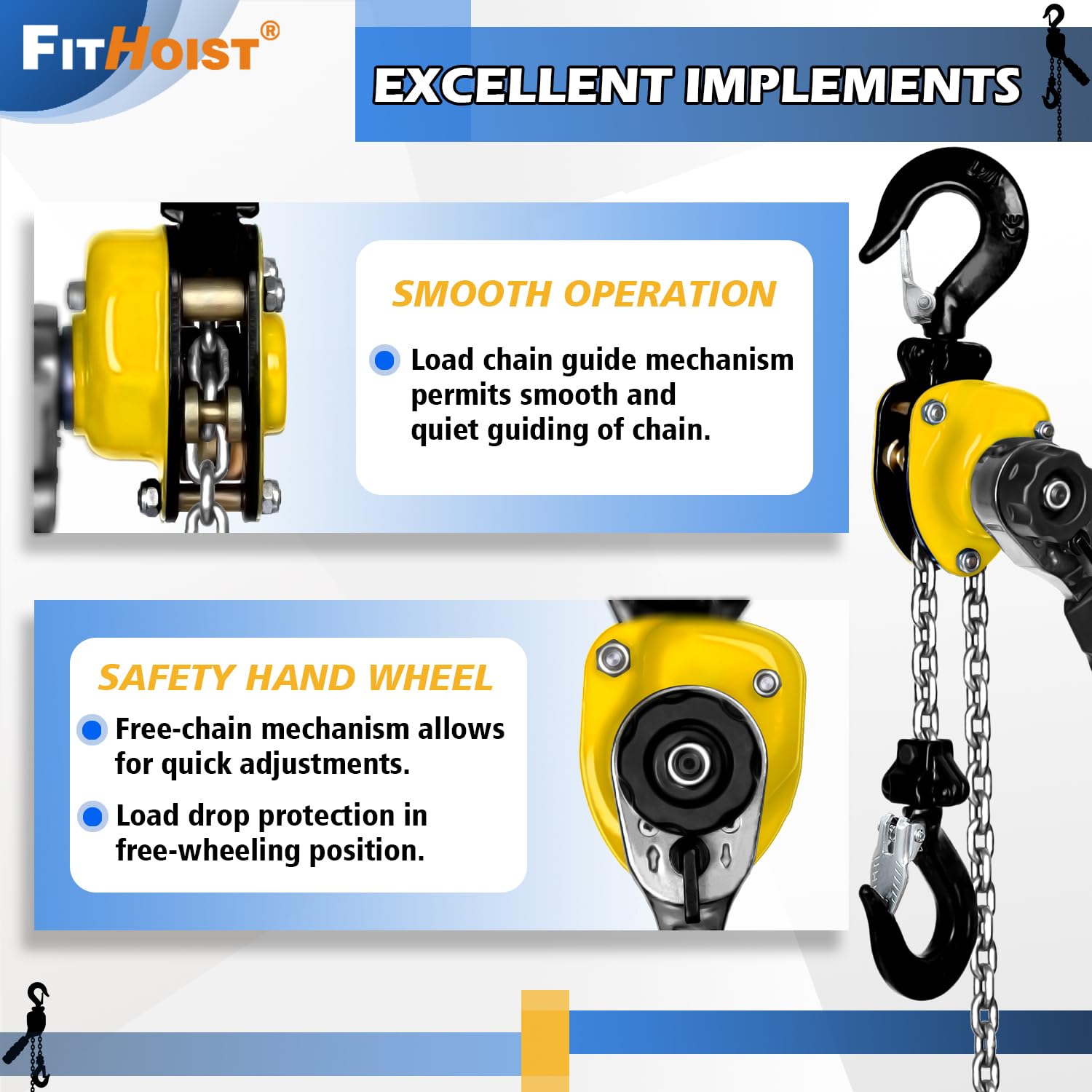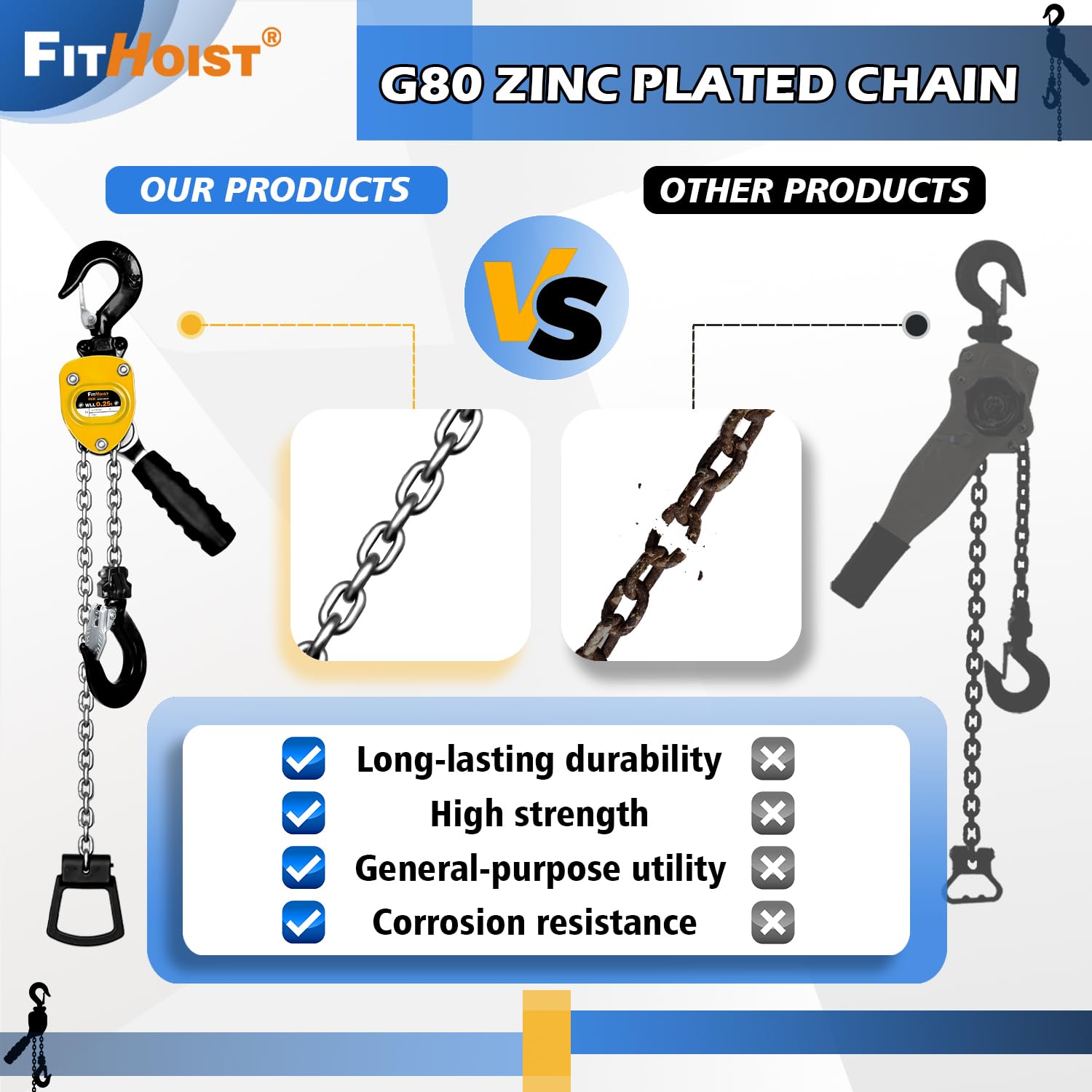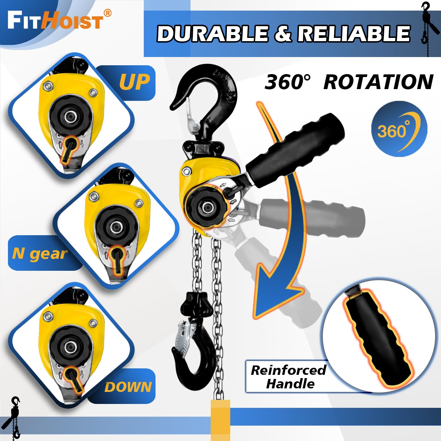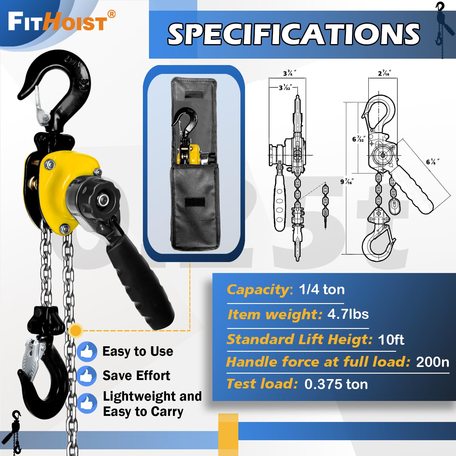 - Excelente capacidad de carga: diseñado con una capacidad de elevación confiable de 1/4 tonelada (550 libras) y una longitud de 10 pies, este mini polipasto de palanca utiliza una cadena de acero de aleación G80 de alta resistencia para proporcionar una durabilidad excepcional y capacidad de carga para aplicaciones de alta resistencia.