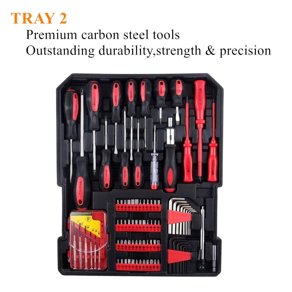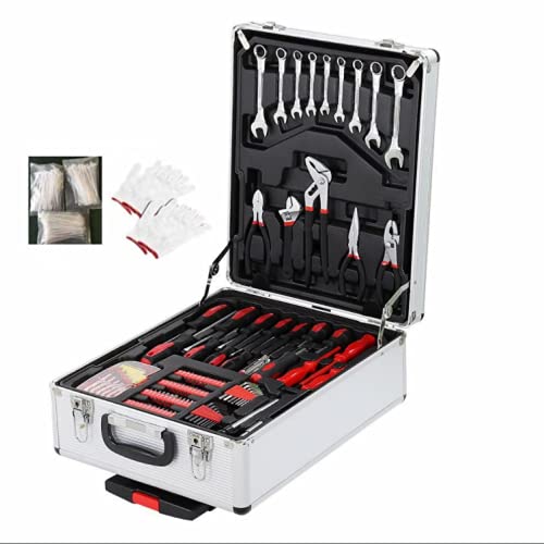 - Kit de herramientas de 799 piezas: el juego incluye llaves, alicates de punta larga, insertos de enchufe hexagonal, barra de extensión flexible, bujía, mango de carraca, destornillador de prueba eléctrico, guantes de tijeras, martillo de garra, etc.