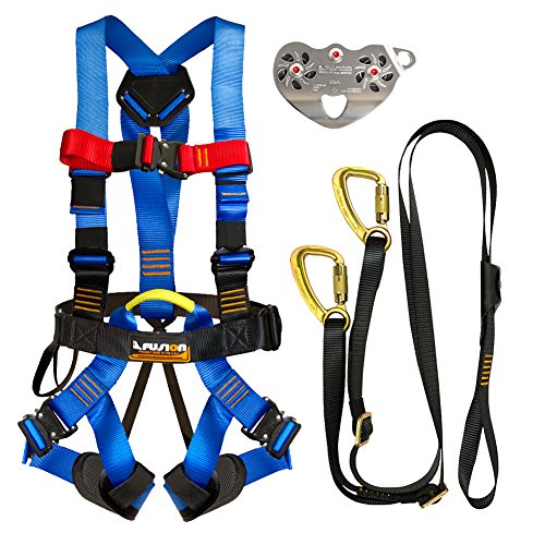 Detalles: Fusion Climb Pro - Kit de cremallera para patio trasero, arnés de cuerda para carrito FK-A-HLT-19 Fusion Climb Streak Racer Full Body acolchado Zip Line Arnés estilo H Tamaño azul m-l - Arnés de cremallera de cuerpo completo con parte superior estilo H > - equipado con 6 puntos de ajuste, 2 puntos de anclaje, hebillas de aluminio de liberación rápida, cintura acolchada, patas acolchadas de espuma EVA, 2 bucles de fusión escalada de 6 pies en Y Doble bloqueo con doble doble bloqueo verificverificAbineer - Correa plana de 1 pulgada de ancho en ambas piernas. - Correa nominal de más de 5000 libras. - Diseñado específicamente para la seguridad y el posicionamiento para cursos de cuerda alta, escalada de fusión, velocidad de adviento, polea de acero inoxidable súper 50KN negro o plateado. El advenimiento se considera el mejor de su clase para mayor durabilidad y estabilidad. - Cuerpo de acero inoxidable 304 tratado térmicamente, diseñado para un servicio extremo y continuo en cursos de desafío permanente D, tirolinas comerciales y aplicaciones de ecoturismo. - Esta polea tiene 2 puntos de fijación tanto primario como de respaldo. - Ideal para operadores comerciales, dándoles la capacidad de reemplazar rodamientos para un uso prolongado. - Este producto es fuerte y fiable con rodamientos de bolas sellados y poleas de aleación de larga duración, lo que lo convierte en la polea tándem ideal.