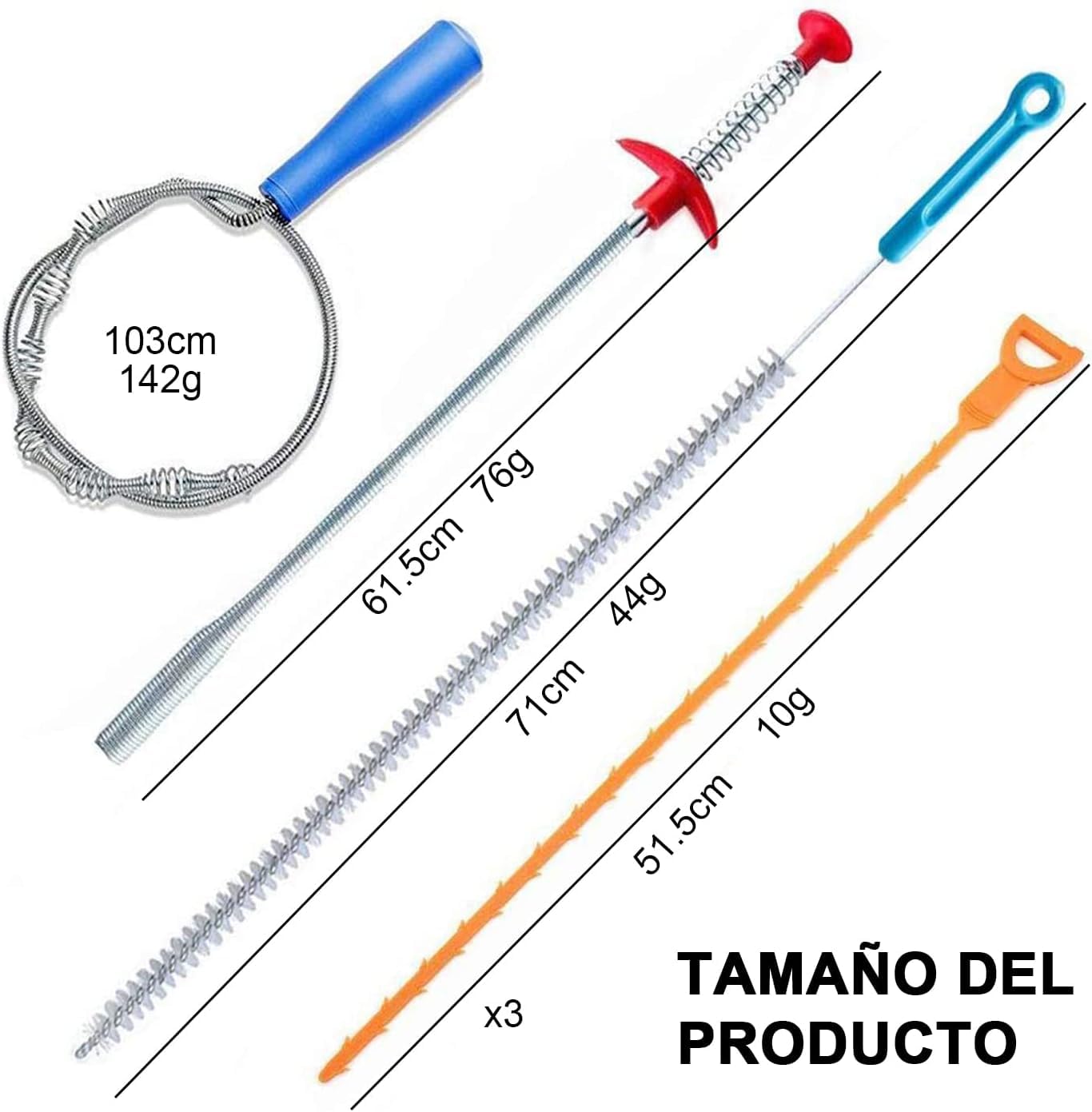 - Herramientas de limpieza de drenaje de cabello, proporciona 4 tipos de herramientas de limpieza. serpientes de drenaje, es suave y duradera. Combinada con el uso de cepillos de limpieza, dragas y garras de acero inoxidable, puede controlar el cabello y otros obstáculos y eliminar fácilmente la basura.