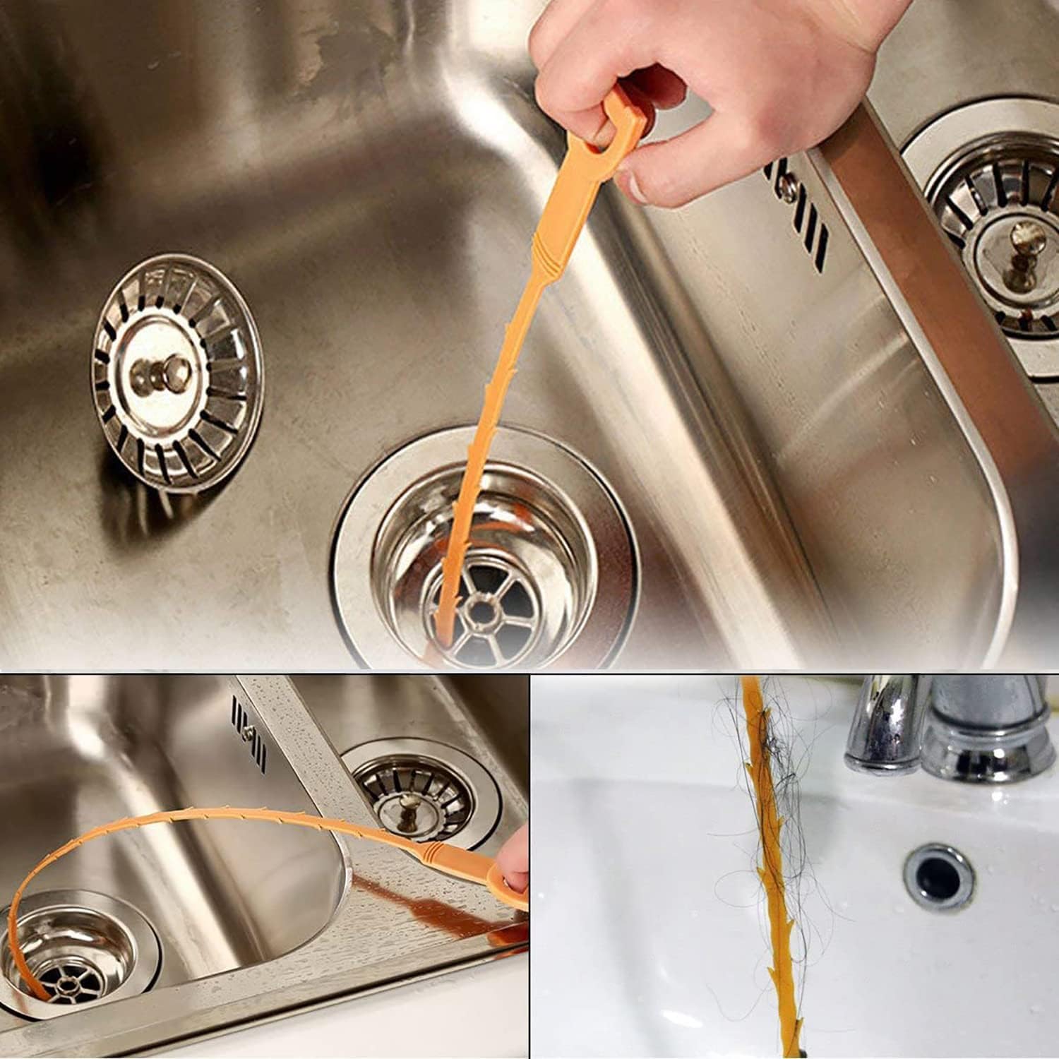 - Limpieza de drenaje serpiente, que incluye 3 serpientes de drenaje de plástico de 50 cm, 1 recogedor de serpientes de agua de línea sólida de acero inoxidable de 61 cm, 1 cepillo de limpieza de 71 cm, canalón de metal de 103 cm.
