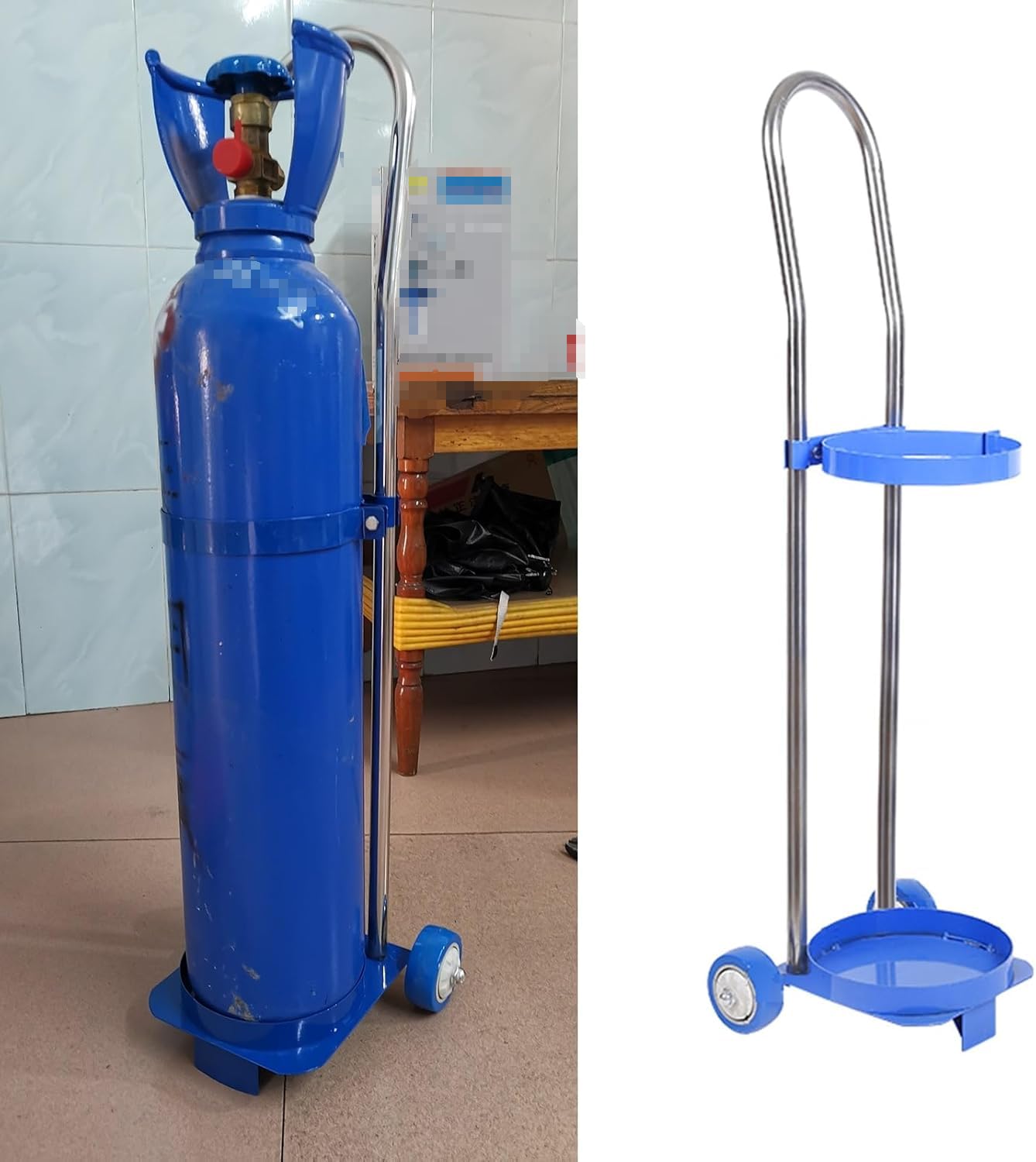 - Carro para cilindros de oxígeno portátil: cuenta con asas y ruedas para una movilidad sin esfuerzo, lo que le permite transportar y almacenar sus cilindros de gas con facilidad donde sea necesario.