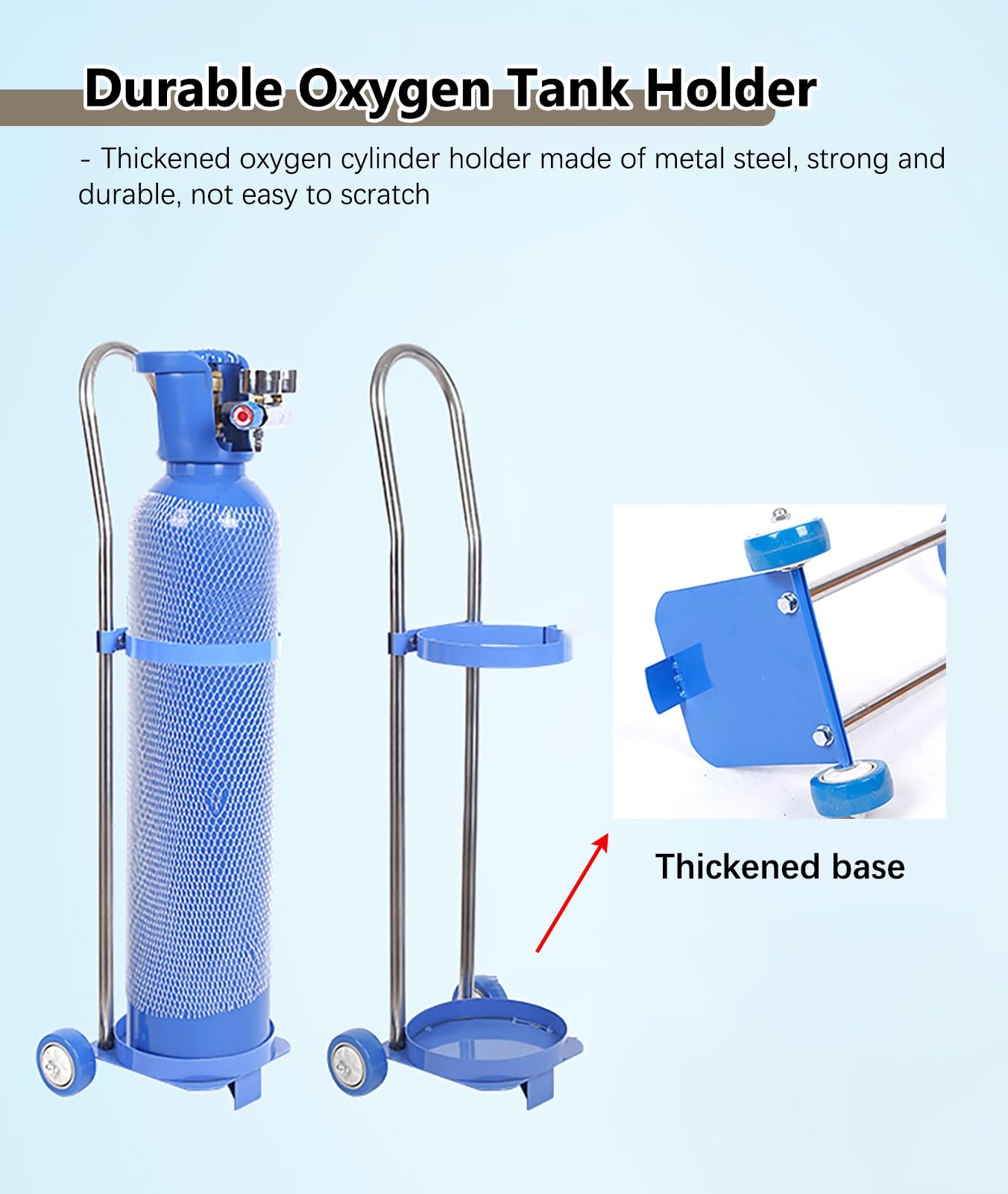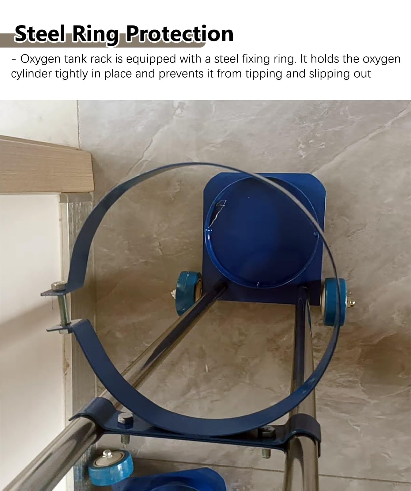 - Soporte seguro y plegable para cilindros de gas: viene con un anillo de fijación de acero para sujetar firmemente el cilindro de oxígeno en su lugar, evitando cualquier riesgo de vuelco o deslizamiento para mayor seguridad.