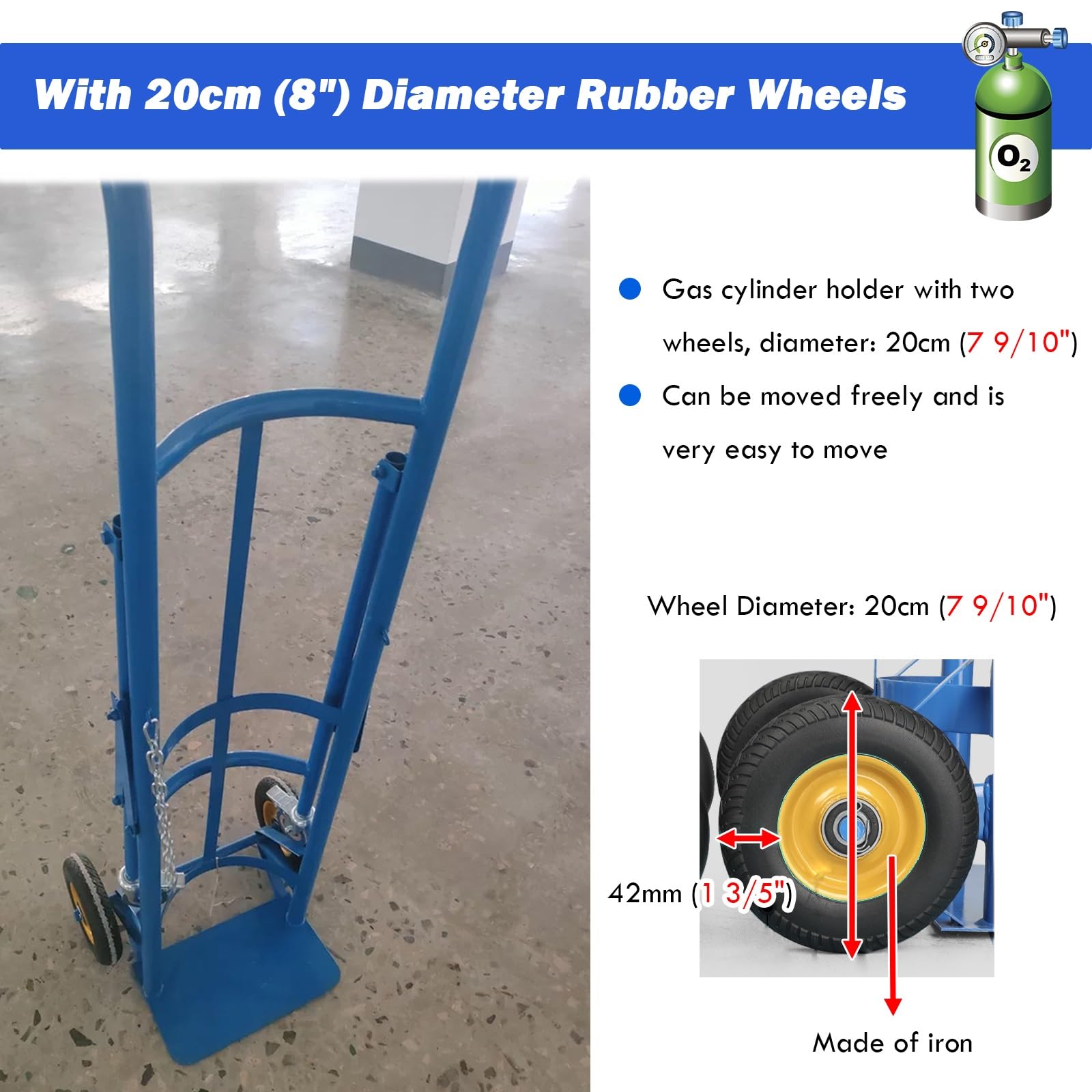 - Con ruedas de goma de 20 cm (8") de diámetro: los cojinetes de los neumáticos están hechos de hierro y la superficie de la rueda es de 42 mm (1 3/5") de ancho, es silencioso en uso y puede transportar cilindros de oxígeno sin problemas, ahorrando tiempo y energía.
