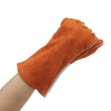 - Materiales avanzados: la capa exterior de los guantes de soldadura está hecha de cuero de cuello de vaca de dos capas con un efecto de aislamiento térmico resistente al desgaste, cómodo, suave y de alto rendimiento, y cosido con hilo ignífugo.