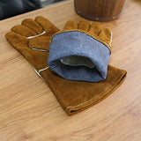 ▶Guantes de soldador resistentes al calor, guantes de parrilla para horno de soldador, guantes para estufa de chimenea, color marrón - 35,5 cm