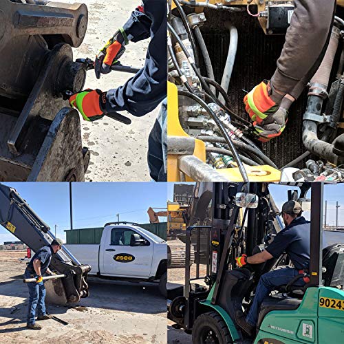 Handlandy Guantes de trabajo reflectantes de alta visibilidad, guantes de seguridad antivibración, pantalla táctil, parte trasera de elastano flexible naranja, tamaño mediano