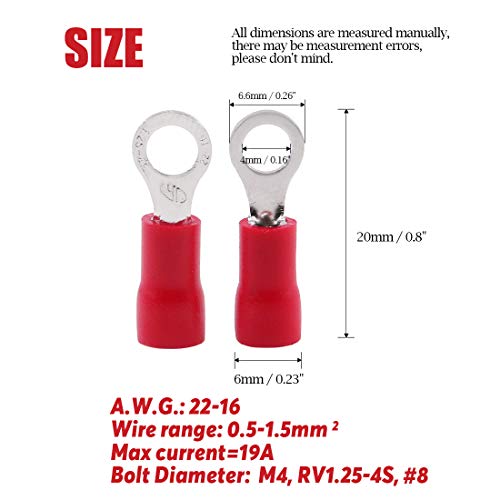💢Hilitchi - 100 Conectores de Alambre eléctrico aislados de Calibre 22-16 (M4, Rojo)