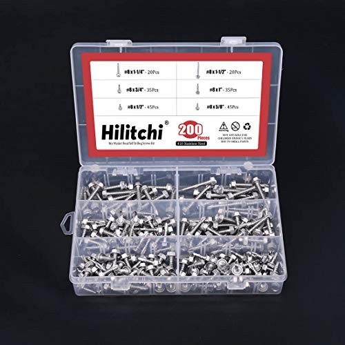 Hilitchi 410 - Juego de tornillos de acero inoxidable #8 con punta perforadora, 200 piezas