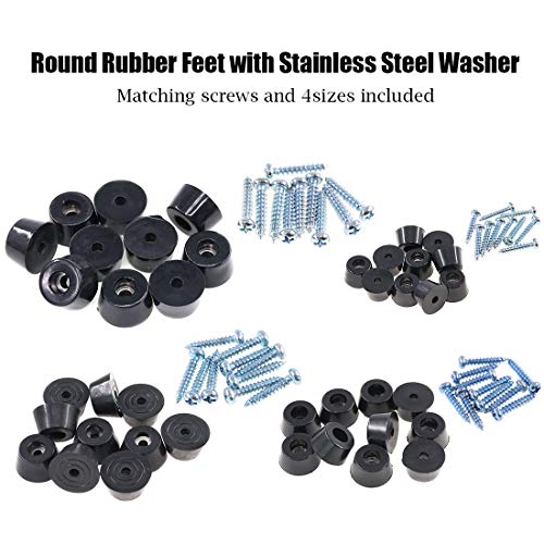 💢Hilitchi - Almohadillas de goma redondas negras con tornillos a juego con arandela de acero inoxidable integrada para tabla de cortar, amplificadores, mesas de escritorio, sofás (kit surtido)