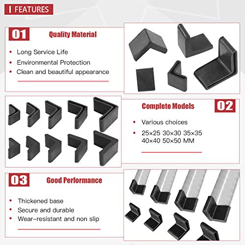 - Aplicaciones: específicamente para patas de metal en ángulo. Ideal para patas de silla, patas de banco, patas de mesa, taburetes de bar, deslizadores de pies, insertos de muebles de patio, etc.