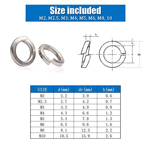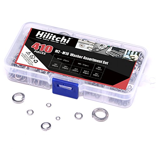 💢Hilitchi - Juego de 410 arandelas de acero inoxidable 304 (8 tamaños)