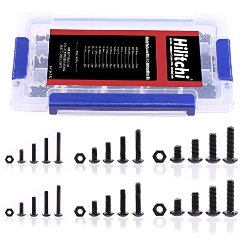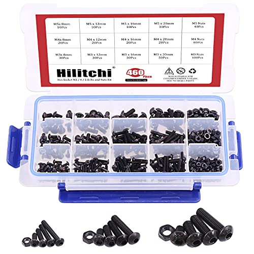 Hilitchi - Juego de 460 tornillos de cabeza hexagonal M3 M4 M5 con cabeza de botón y cabeza hexagonal, 10,9 de acero de aleación