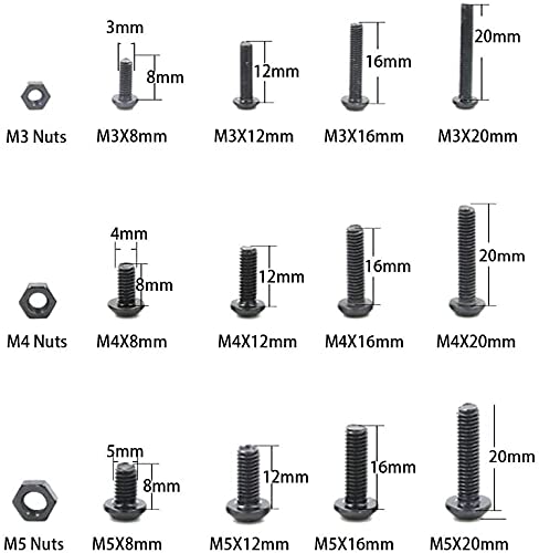Detalles: Hilitchi 460 piezas de alta calidad de acero inoxidable Hex Socket Cap cabeza tornillo tuercas Kit Especificaciones: Tipo de unidad: zócalo hexagonal; Estilo de la cabeza: cabeza del botón; Material: acero de aleación de grado 10.9; Color principal: negro. El paquete incluye: 30 piezas M3 X 20 mm. 30 piezas M3 x 16 mm. 30 piezas M3 x 12 mm. 30 unidades M3 x 8 mm. 100 tuercas M3. 20 unidades M4 x 20 mm. 20 unidades M4 x 16 mm. 20 unidades M4 x 12 mm. 20 unidades M4 x 8 mm. 80 tuercas M4. 10 unidades M5 x 20 mm. 10 piezas M5 x 16 mm. 10 piezas M5 x 12 mm. 10 unidades M5 x 8 mm. 40 tuercas M5. Cantidad del paquete: 460 unidades. Perno y tuercas hexagonales (+-2%). Este juego está organizado por tamaño en una caja de almacenamiento transparente para un acceso rápido y protección. 10.9 Grado de acero de aleación Material Botón Cabeza hexagonal Tornillos dominantes. Los pernos avellanados son anticorrosión, inoxidable, no contaminación y alta dureza. Es ampliamente utilizado en industrial. Hilitchi es una empresa profesional de sujetadores. Vendemos tornillos de acero, acero inoxidable y latón, tornillos autorroscantes, tornillos autoperforantes, tornillos de pared seca, tuercas hexagonales, tornillos hexagonales, remaches, anclajes, clavos, arandelas planas, arandelas de resorte, acoplamientos y fijaciones.