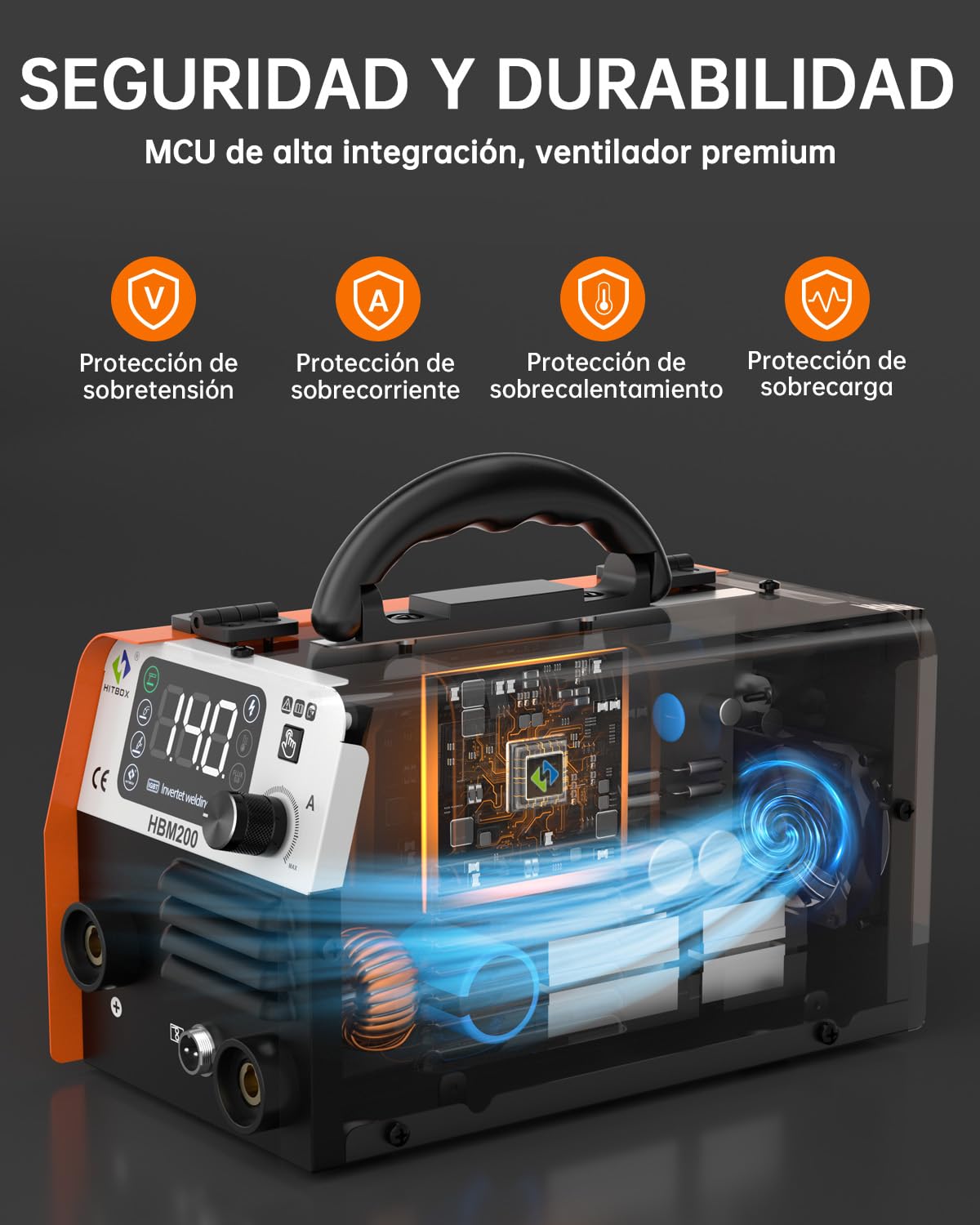 ▶ HITBOX Soldadora Inversora Microalambre, 140A sin Gas/Stick/Lift TIG 3 en 1 Inversor para Soldar, 110V Maquina de Soldar Portatil, Máquina de Soldar Soldadora MIG Planta de Soldar(HBM200)