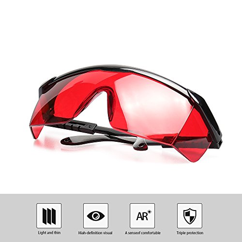 ▶ Gafas de seguridad con láser rojo - Gafas de protección ocular para nivel láser rojo, herramientas láser rotativas y multilínea - Gafas con templo ajustable (caja protectora incluida)