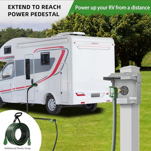 - Cable de extensión para RV de 50 amperios: el cable de alimentación eléctrica ISLEWIRE de 25 pies y 50 amperios cuenta con conectores moldeados macho NEMA 14-50P a hembra NEMA 14-50R. El cable RV para exteriores de 50 amperios es ideal para caravanas, autocaravanas, EVS, generadores y equipos de campamento, proporcionando una rápida reposición de energía.