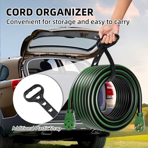 ▶ Cable de extensión RV/EV de 15 pies y 50 amperios con mango de agarre, cable de alimentación resistente de calibre 6/3+8/1 STW de 4 clavijas, NEMA 14-50P/R con organizador de cables para Tesla modelo 3/S/X/Y, negro y verde, listado ETL