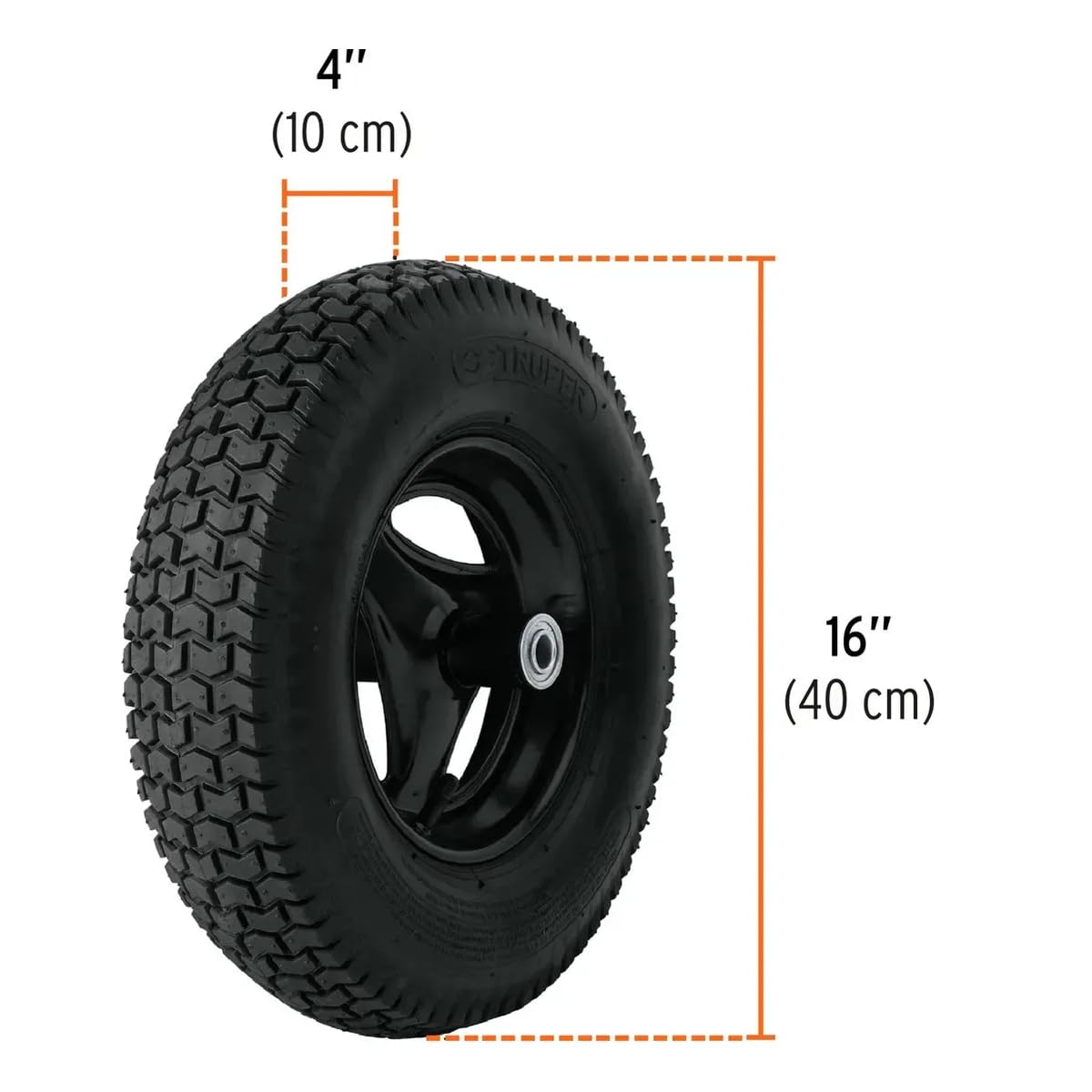 - 🛞 Rueda neumática de 16” con rin metálico 🚜🌄 Perfecta para terrenos irregulares, brinda mayor agarre, estabilidad y comodidad al mover cargas pesadas.