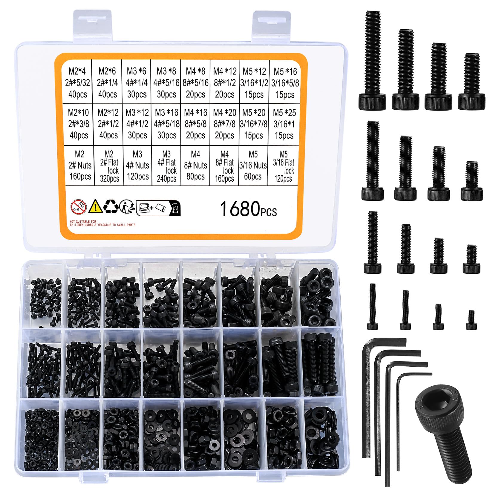 - El paquete incluye: recibirás 1680 piezas en total, el tamaño incluye: 2# x 5/32 pulgadas (m2 x 4 mm), 2# x 1/4 pulgadas (m2 x 10 mm), 2# x 1/2 pulgadas (m2 x 12 mm), 4# x 1/4 pulgadas (m3 x mm, 6 mm, mm, 5 mm, 5/16 pulgadas (m3 x 8 mm), 4# x 1/2 pulgadas (m3 x 12 mm), 4# x 5/18 pulgadas (m4 x 8 mm), 8# x 5/8 pulgadas (m4 x 12 mm), 8# x 5/8 pulgadas (m4 x 12 mm), 8# x 5/8 pulgadas mm, 6 mm, generación 7/8 pulgadas (m4 x 20 mm), 3/16 x 1/2 pulgadas (m5 x 20 mm), 3/16 x 5/8 pulgadas (m5 x 20 mm), 3/16 x 7/8 pulgadas (m5 x 25 mm), incluyendo tuercas y arandelas planas de tamaño corresponcorresponcorrespon